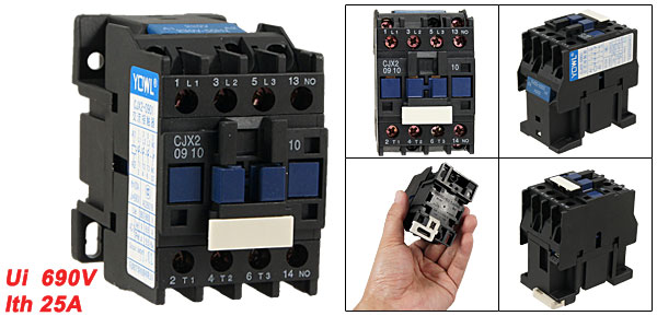Product Name AC Contactor Model Number CJX2-0910 Material Plastic, Metal, Electrical Parts Rated Insulation Voltage(Ui) 690V Conventional Thermal Current(Ith) 25A Rated Operational Current 9A Rated Coil Voltage 220/230V, 50Hz AC-3 Ue 380 660 V Ie 9 6.6 A Pe 4 5.5 KW Number of Contact 3P+NO Overall Size(Approx.) 7.5 x 4.5 x 8cm / 3.0'' x 1.8'' x 3.1''(L*W*H) Main Color Black Net Weight 333g Package Content 1 x AC Contactor - Reviews