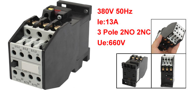 Product Name AC Contactor Model Number CJ20-16A Material Plastic, Metal, Electrical Parts Coil Voltage 380V 50Hz Rated Insulation Voltage 660V Ue 660V Ie 13A Power 11KW(AC-3) Heat Current 16A Number of Contact 3 Pole 2NO 2NC Terminals Number 4 Screw Terminals Altitude <2000m Air Temperature -5C~40C Humidity <50%(40C) Overall Size (Approx.) 11.5 x 7.2 x 4.4cm/4.53" x 2.83" x 1.73" (L*W*T) Mounting Size 35mm Mounting Rail Color Black Net Weight 446g Package Content 1 x AC Contactor - Reviews