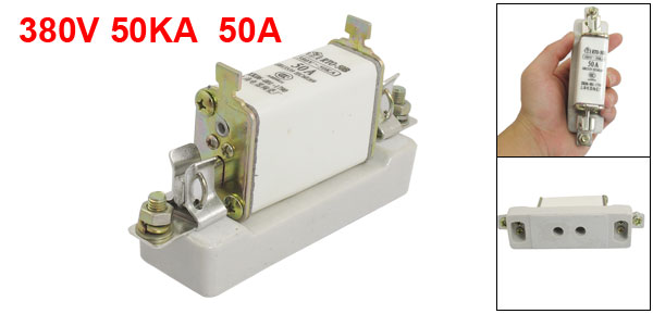 Product Name Fuse Link w Base Model RTO-50B Rated Breaking Capacity 50KA Rated Voltage 380V Rated Current 50A Fuse Link Size(Approx.) 10.3 x 5.2 x 2.5cm / 4"x 2"x 0.98"(L*W*T) Base Size(Approx.) 13.5 x 3.5 x 4.6cm / 5.3"x 1.4"x 1.8" (L*W*H) Mounting Thread Dia. 6mm / 0.22" External Material Ceramic, Metal, Plastic Main Color White, Silver Tone Weight 341g Package Content 1 x Fuse Link