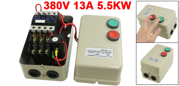 Product Name Motor Magnetic Starter Model QCX5-5.5KW Shell Material Metal Starter Coil: 380VAC Rated Power:5.5KW / 7.5 HP Rated Current:13A
