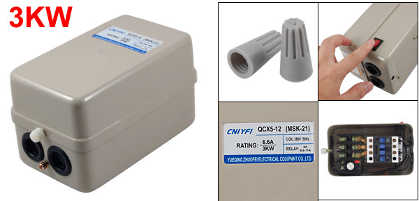 Product Name Magnetic Starter Model QCX5-12(MSK-21) Contactor Model CJX2-D1210 Starter Rating 3KW / 4 HP Coil Voltage AC 380V 50/60Hz Contactor Load Power(Three Phase) 3KW / 4 HP, 220VAC;5.5KW / 7.4 HP, 380-480VAC; 7.5KW / 10 HP, 660VAC Adjustable Ampere Rating 4.5-7.2A Size 16 x 9.6 x 9cm / 6.3" x 3.8" x 3.5" (L*W*H) External Material Aluminum Color Gray Net Weight 920g Package Content 1 x Magnetic Starter - Reviews