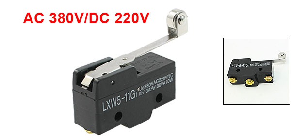 Product Name Micro Switch Model No. LXW5-11G1 Actuator Type Long Hinge Roller Lever Actuator Action Momentary Contact Type SPDT 1 NO 1 NC 1 Com Terminal Type 3 Screw Terminals Ith 10A Voltage AC 380V/DC 220V Power 100VA / 10W Lever Length 60mm/2.4" Roller Size 10 x 4.5mm/0.4" x 0.2"(D*T) Hole Dia 4.5mm / 0.2" Hole Center Distance 25mm/1" Body Size 50 x 30 x 18cm / 2" x 1.2 " x 0.7"(L*W*H) Material Metal, Plastic Color Black, Silver Tone Net Weight 25g Package Content 1 x Micro Switch - Reviews
