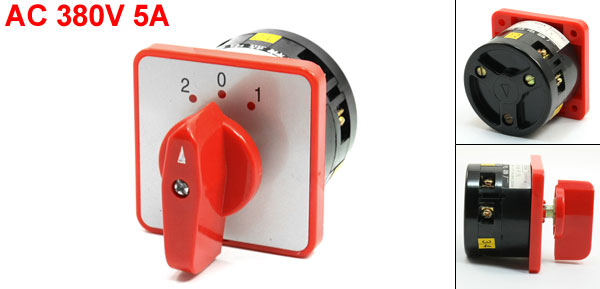 Product Name Cam Switch Model No. LW6-1/B054 Rating 380V 5A Positions 3 Positions(2-0-1) Terminal Number 6 Body Size 56 x 56 x 37mm / 2.2" x 2.2"x 1.5"(L*W*T) Panel Size 60 x 60 mm/2.4" x 2.4" (L*W) Overall Height 80mm / 3.1" Mount Hole Diameter 4mm/0.16" Mount Hole Center Distance 46mm/1.8" External Material Plastic, Electronic Parts Color Red, Black Net Weight 178g Package Content 1 x Cam Switch