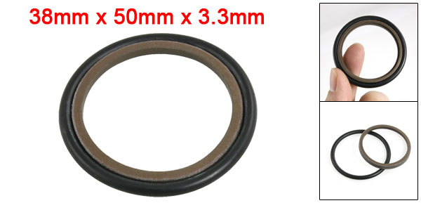 Details38x50x3.3mm NBR PTFE Hydraulic Rod Step Seal Ring Black Brown  Product Name Rod Step Seal Material PTFE, NBR PTFE Ring Inside Diameter 38mm / 1.50" O Ring Outside Diameter 50mm / 1.97" O RingThickness 3.3mm / 0.13" Color Black & Brown Net Weight 6g Package Content 1 x Rod Step Seal