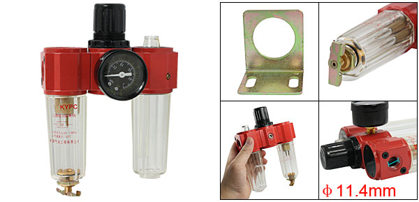 Product Name Air Source Treatment Combination Model 398-8 Material Metal, Plastic Working Medium Air Max. Pressure 1.6 Mpa Adjustable Pressure Range 0.05-1 Mpa Thread Diameter 11.4mm/ 0.448" Pressure Gauge Connector Dia 8.5mm/ 0.448" Pressure Gauge Range 0-1 MPa Total Size 17 x 11.5 x 4cm / 4.5" x 3.1" x 1.6"(L*W*H) Pressure Gauge Size 4 x 2.5cm/ 1.6" x 1"(D*T) Color Black, Red, Clear Weight 437g Package Content 1 x Air Source Treatment Combination 1 x Pressure Gauge 1 x Install Bracket - Reviews