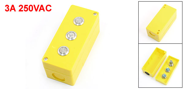3A 250VAC Plastic Housing Three Metal Pushbutton Control Station Box