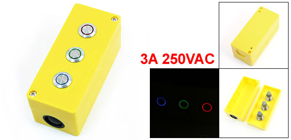 3A 250VAC SPDT Momentary Red Green Blue Light 3 Button Control Station