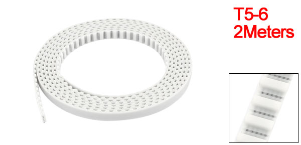 Product Name Timing Belt Model T5-6 Teeth Pitch 5mm / 0.2" Belt Width 6mm / 0.24" Belt Length 2Meters/ 78.7"(6.6Ft) Design Open Ended Material Polyurethane(PU) Color White Weight 34g Package Content 1 x Timing Belt  - Reviews