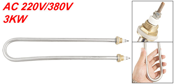 Product Name Electric Heating Tube Design U Shape Material Stainless Steel Rated Voltage AC 220V/380V Power 3KW Bar Diameter 10mm/ 0.39" Heater Size (Approx.) 35 x 6.8 x 2.5cm/ 13.8" x 2.7" x 1" (L*W*T) Thread Diameter 15.3mm/ 3/5" Color Silver Tone Weight 268g Package Content 1 x U Shaped Electric Heating Tube - Reviews