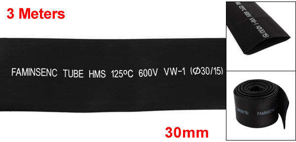3Meter 30mm Dia Ratio 2:1 Polyolefin Heat Shrinking Shrinkable Tubing Tube Black