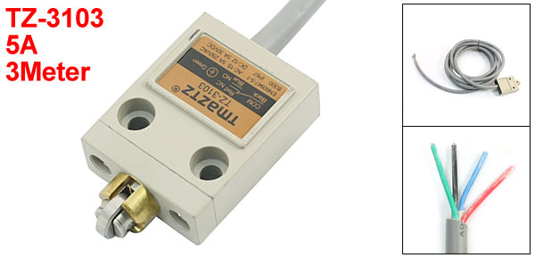 Product Name Limit Switch Model No. TZ-3103 Contact Configuration 1NO+1NC(SPDT) Actuator Type Crossroller Plunger Action Type Momentary Ith 5A AC-15 250VAC 5A DC-12 30VDC 5A Waterproof Level IP67 Roller Size 12 x 3.7mm/0.47" x 0.15"(D*T) Actuator Size 12.5 x 8mm/ 0.49" x 0.315"(D*L) Installing Hole Size 5.5mm/0.22"(Dia) Installing Hole Distance 2.5cm/1"(L*W)(Center to Center) Total Length 3Meter/9.8Ft Switch Size 6.5 x 3.8 x 1.6cm/2.6" x 1.5" x 0.63"(L*W*H) Material Plastic, Metal Main Color Gray Net Weight 340g Package Content 1 x Limit Switch - Reviews