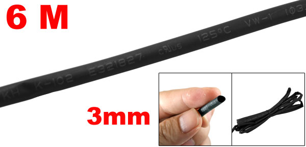 3mm Black Polyolefin Insulation Heat Shrink Tubing 6M 19.7ft