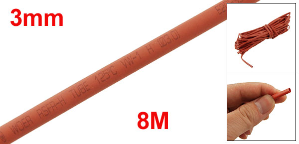 3mm Dia. Heat Shrinkable Tube Shrink Tubing 8M 26.2FT Red
