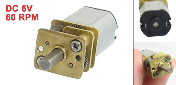 Product Name DC Geared Motor Rated Voltage DC 6V Speed 60 RPM Shaft Diameter 3mm/ 0.12" Shaft Lenght 7mm/0.3" Gearbox Size 12 x 10 x 9mm/ 0.5" x 0.4" x 0.35" (L*W*H) Body Size 24 x 12 x 10mm/ 0.9" x 0.6" x 0.4" (L*W*H) Main Color Silver Tone Material Metal Weight 9g Package 1 x DC Geared Motor - Reviews