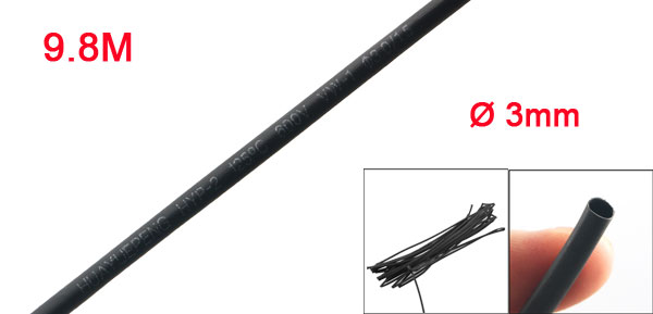 3mm Diameter Ratio 2:1 Polyolefin Heat Shrinking Shrinkable Tube 9.8M Black