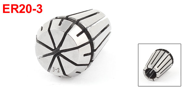 Product Name Spring Collet Model No. ER20-3 Gripping Diameter 3mm Overall Size 21 x 31.5mm / 0.8" x 1.24" (Max.D*H) Material Spring Steel Color Silver Tone Net Weight 40g Package Content 1 x Spring Collet - Reviews