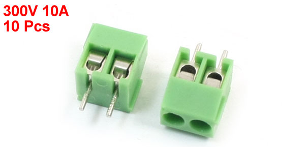 Product Name Screw Terminal Block Power 300V 10A Poles 2 Position Pin Number 2 Pin Pitch 3mm / 0.12" Total Size 9 x 8 x 7.5mm /0.35" x 0.31" x 0.3" (L*W*H) Color Green, Silver Tone Material Plastic Weight 10g Package Content 10Pcs x Screw Terminal Block  - Reviews