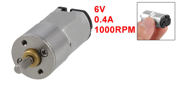 Product Name DC Geared Motor Model Type 16GA Rated Voltage 6V Current 0.4A Speed 1000RPM Shaft Size 3 x 12mm/ 0.1" x 0.46"(D*H) Body Size 16 x 30mm / 0.63"x 1.2"(Max.D*H) Total Length 43mm / 1.7" Main Color Silver Tone Main Material Metal Weight 20g Package 1 x DC Geared Motor - Reviews