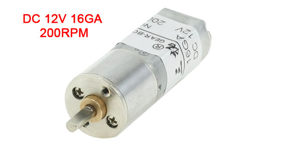 Product Name DC Geared Motor Rated Voltage DC 12V Rated Current 16GA ( no load ) Speed 200 RPM Shaft Diameter 3mm/ 0.118" Gearbox Size 26 x 16 x 12mm/ 1" x 0.6" x 0.47(L*W*H) Overall Size 16 x 52mm/ 0.63" x 2" (D*H) Main Color Silver Tone Material Metal Weight 29g Package 1 x DC Geared Motor - Reviews