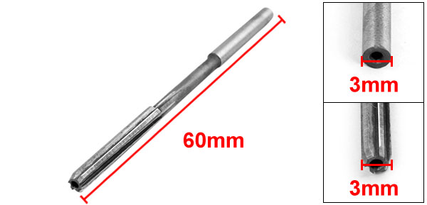 Product Name Machine Reamer Material HSS Flute Number 6 Cutting Diameter 3mm/ 3/25" Cutting Depth 20mm/ 13/16" Shank Diameter 3mm/ 3/25" Total Length 60mm/ 2.4" Color Gray Weight 5g Package Content 1 x Machine Reamer  - Reviews