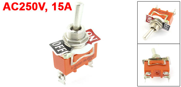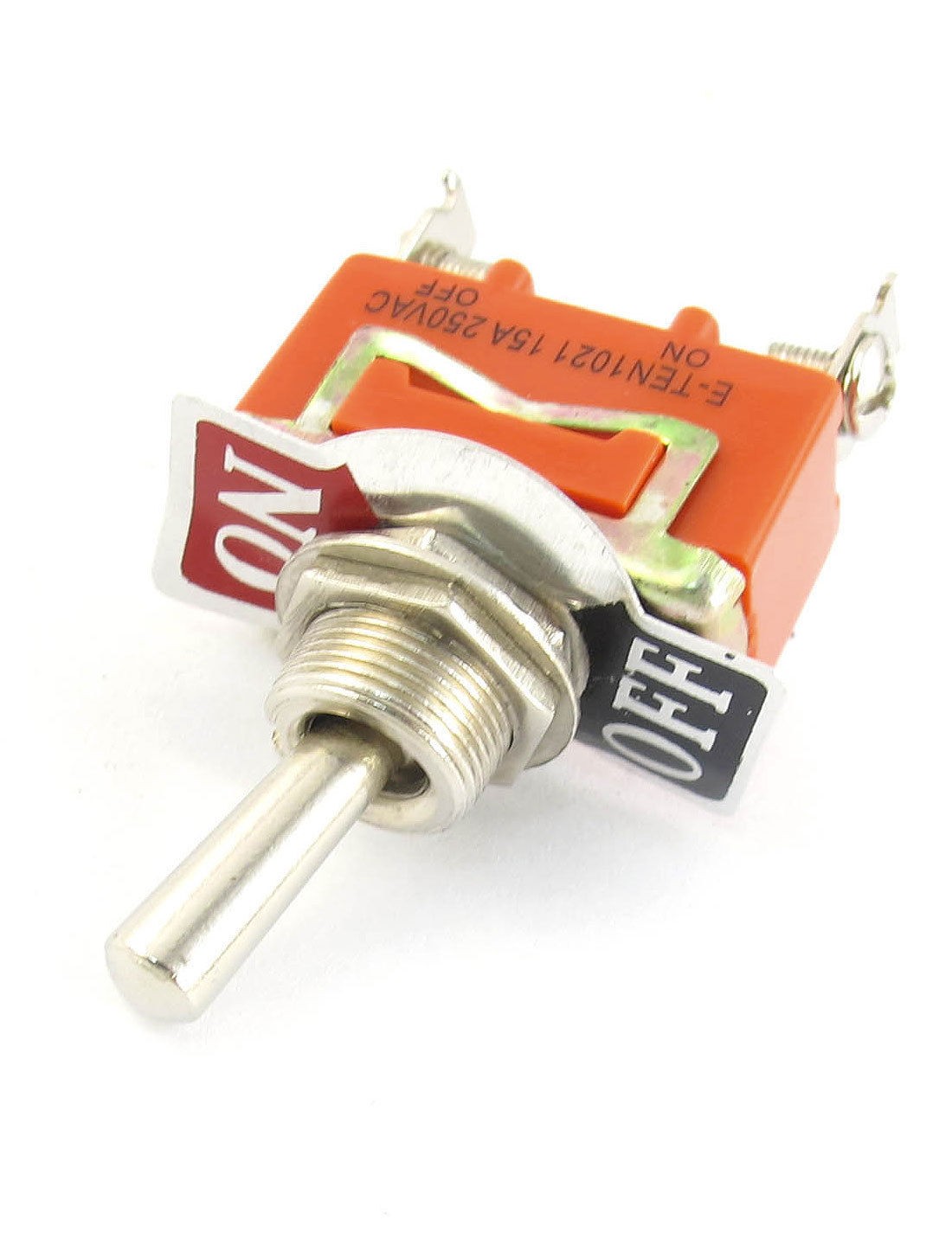 Product Name Toggle Switch Model E-TEN 1021 Type SPST Position 2 Positions (ON/OFF) Action Latching Thread Diameter 3mm / 0.12" Voltage & Current AC250V, 15A Main Body Size 29 x 28 x 18mm / 1.1" x 1.1" x 0.7"(L*W*H) Overall Height 57mm / 2.2" Material Metal & Resin Color Orange, Silver Tone Weight 22g Package Content 1 x Toggle Switch - Reviews
