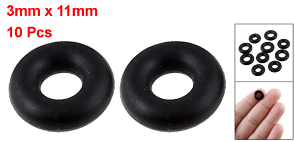 3mm x 11mm Black Nitrile Rubber Sealing O Ring Seal Washer Grommets 10 Pcs