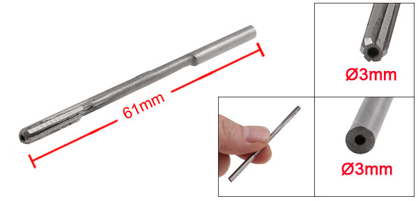 Product Name Machine Reamer Material HSS Flute Number 6 Cutting Diameter 3mm / 0.11" Cutting Depth 17mm / 0.669" Shank Diameter 3mm / 0.11" Total Length 61mm / 2.4" Color Gray Weight 4g Package Content 1 x Machine Reamer - Reviews