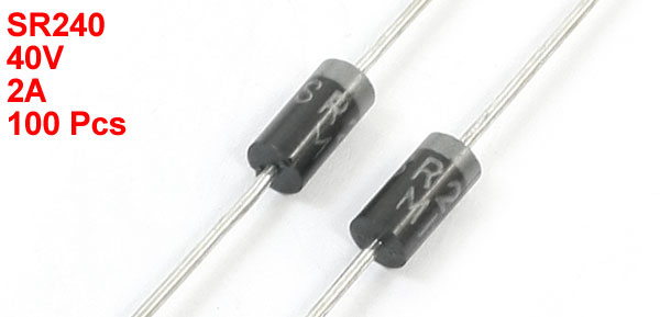 Product Name Schottky Rectifier Diodes Model SR240 Max Repetitive Peak Reverse Voltage 40V Average Forward Current 2A Lead Size(Each Side) 0.7 x 26mm/0.01" x 1"(D*L) Body Dimension 3 x 6.5mm/0.12" x 0.25"(D*L) Color Black, Silver Tone Weight 33g Package Content 100Pcs x Schottky Rectifier Diodes - Reviews