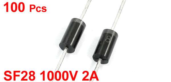 Product Name Super Fast Recovery Diode Model SF28 Max Repetitive Peak Reverse Voltage 1000V Average Forward Current 2A Lead Size(Each Side) 0.7 x 26mm/0.01" x 1"(D*L) Body Dimension 3 x 6mm/0.12" x 0.24"(D*L) Color As Picture Shown Weight 32g Package Content 100Pcs(±2%) x Super Fast Recovery Diode - Reviews