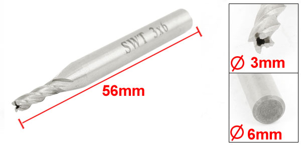 3mm x 6mm Straight Shank 4 Flutes HSS End Mill Cutter 56mm Long