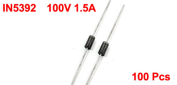 Product Name Rectifier Diode Model IN5392 Forward Current 1.5A Max Peak Reverse Voltage 100V Lead Size 1 x 27mm/ 0.04" x 1"(D*L) Body Size 3 x 6mm/ 0.12" x 0.24" (D*L) Main Color Black, Silver Tone Weight 33g Package Content 100 Pcs(±2%) x Rectifier Diodes - Reviews