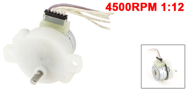 Product Name Stepping Motor Step Angle 18°(one revolution is 24 steps) Speed 4500RPM Voltage DC 12A Gear Box Reduction Ratio 1:12 Shaft Diameter 3mm/ 0.12" Shaft Length 10mm/0.4" Motor Size 20 x 11mm/0.8" x 0.43"(D*H) Tatal Height (Approx.) 47mm/1.9" Cable Length 3cm / 1.2" Mouting Hole Dia 3mm/0.12" Mounting Hole Distance 38mm/1.5" Material Metal, Plastic, Electronic Parts Color Silver Tone, White Weight 27g Package Content 1 x Stepping Motor