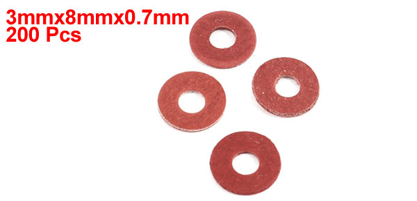 3mmx8mmx0.7mm Insulated Fiber Insulating Washers Spacers Red 200 Pieces