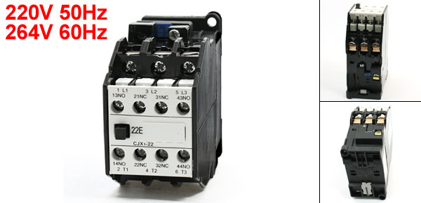 3P 220/264V 50/60Hz Coil 35mm Din Rail AC Contactor CJX1-22A 2NO 2NC