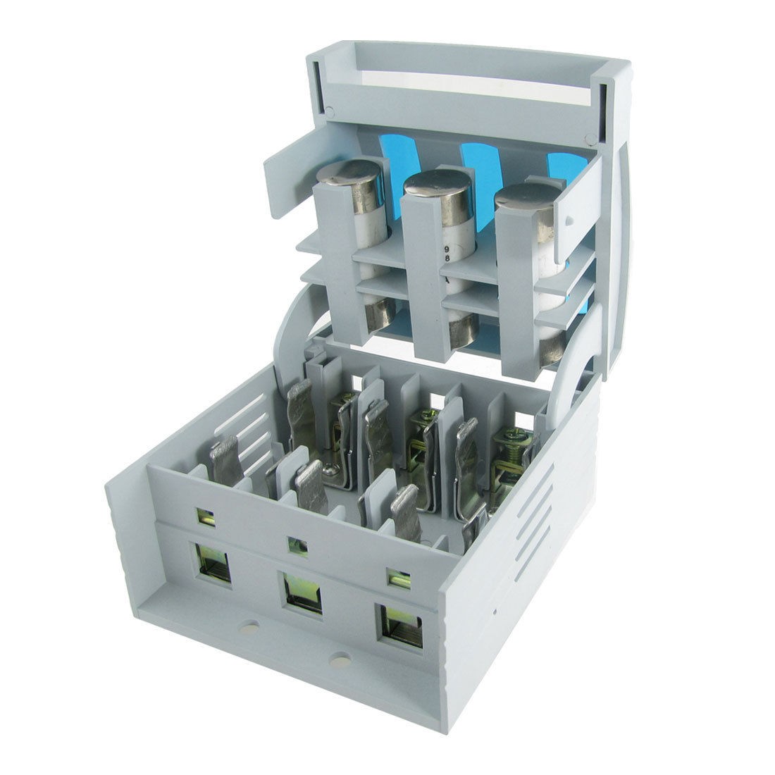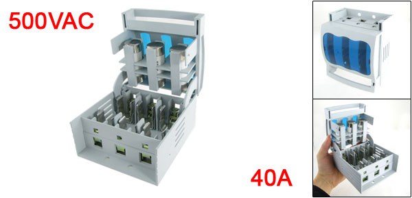 Product Name Fuse Isolating Switch Model No. HR17B-100/30 Fuse Type 22 x 58mm / 0.87" x 2.28"(D*H) Rated Voltage 500VAC Rated Current 40A Rated Limiting Short Current 50kA Rated Heating Current 100A Poles Quantity 3 Poles Fixing Holes Diameter 5.9mm / 0.23", 6.4mm / 0.25" Fixing Hole Spacing 62mm / 2.4" 31 x 103mm / 1.2" x 4"(L*W) Overall Size 119 x 104 x 75.6mm / 4.7" x 4.1" x 3"(L*W*H) External Material Plastic Net Weight 551g Package Content 1 x Fuse Isolating Switch - Reviews