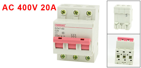 Product Name Circuit Breaker Model Number DZ47-63 C20 Rated Circuit Breaking Capacity 6000A Rated Current 20A Rated Voltage 400VAC Number of Poles 3 Mounting Rail Size 35mm DIN Dail Total Size (Approx) 7.6 x 5.4 x 6.5cm/ 3" x 2.1" x 2.6" (L*W*H) Material Plastic, Electric Components Weight 241g Package Content 1 x Circuit Breaker - Reviews