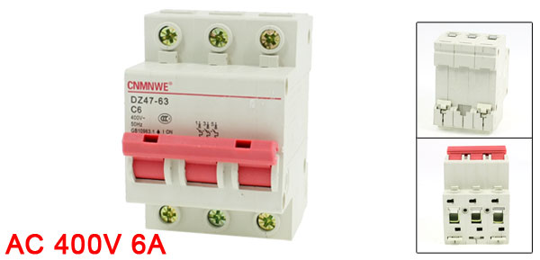 Product Name Circuit Breaker Model Number DZ47-63 C6 Rated Circuit Breaking Capacity 6000A Rated Current 6A Rated Voltage 400VAC Number of Poles 3 Mounting Rail Size 35mm DIN Dail Total Size (Approx) 7.6 x 5.4 x 6.5cm/ 3" x 2.1" x 2.6" (L*W*H) Material Plastic, Electric Components Weight 236g Package Content 1 x Circuit Breaker - Reviews