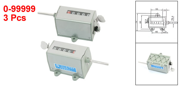 3Pcs 0-99999 5 Bit Digit Arabic Number Record Resettable Stroke Pull Counter