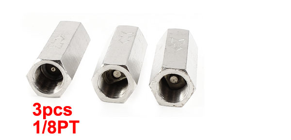 3pcs 1/8PT Female Thread Full Port One Way Air Check Valve Silver Tone