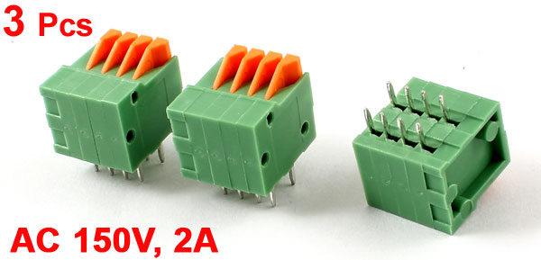3pcs 2.54mm 4 Positions PCB Mount Screwless Spring Terminal Blocks 150V 2A