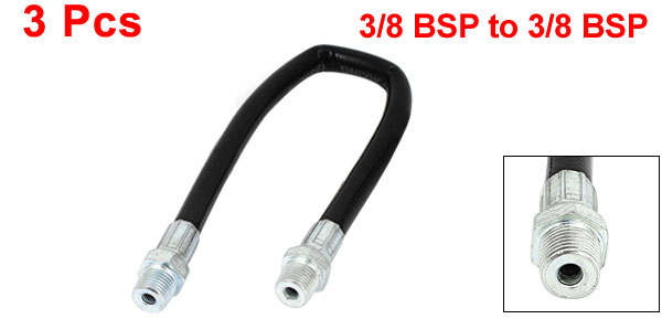 3PCS 3/8 BSP to 3/8 BSP Male Thread Flexible Water Oil Tube Pipe Black 23cm Long
