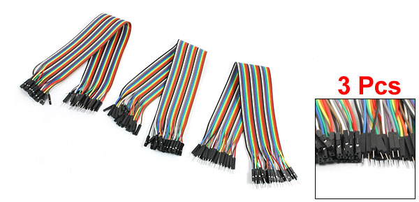 Product Name 30 Pin Jumper Cable Type Male to Female, Male to Male, Female to Female Pin Head Size(Each One) 2.54 x 2.54mm/0.1" x 0.1"(L*W) Length(Each One) 30cm/11.8" Color Colorful Metarial Plastic Net Weight 90g Package Content 3 x Jumper Cable - Reviews