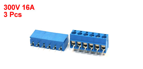 3Pcs 5mm 6-Pin Blue PCB Screw Terminal Block 300V 16A for 14-22AWG Wire