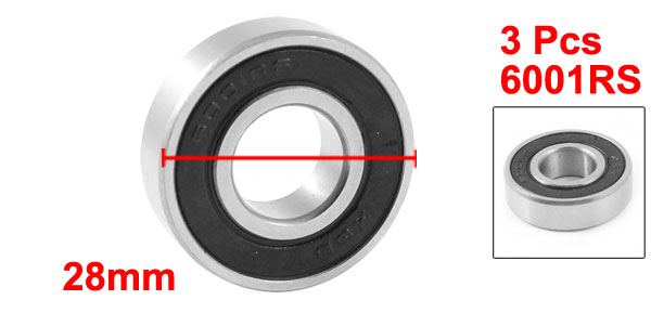 3Pcs 6001RS 12mm Inner 28mm Outer 8mm Wide Single Row Deep Groove Ball Bearing