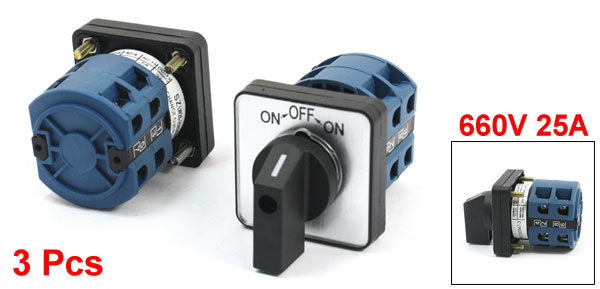 3Pcs 660V 25A 2-Pole 3-Position Momentary Square Rotary Changeover Switch