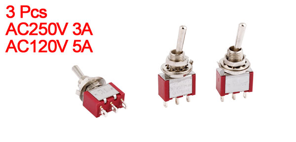 3pcs 6mm Panel Mounting 2-Way SPDT Momentary Toggle Switch AC250V 3A 120V 5A