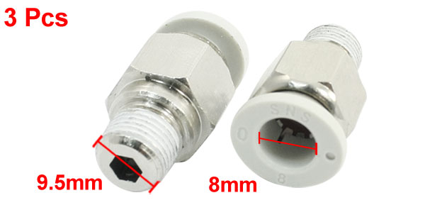 3Pcs 9.5mm x 8mm One Touch Air Pneumatic Tube Push In Male Quick Fittings