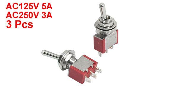 3Pcs AC 125V 5A 250V 3A SPDT 2 Positions Toggle Switch for Switching Light