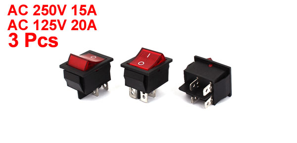 Details3pcs AC 250V/15A 125V/20A Red Button 4 Terminal I/O SPDT PCB Panel Rocker Switch  Main Color Black, Red Overall Size 31 x 25 x 34mm/1.2" x 1" x 1.3"(L*W*H) Country of Manufacture CHINA Type Latching Material Plastic, Metal Button Color Red Poles SPDT Product Name Rocker Switch Net Weight 32g Rated Voltage AC 250V 15A, AC 125V 20A Mounting Size 30 x 21 x 25mm/1.2" x 0.8" x 1"(L*W*H) Package Content 3 x Rocker Switch Position O/I 2 Postion