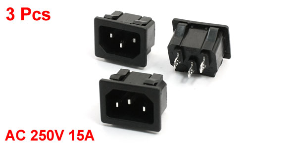 3pcs AC 250V 15A IEC 320 C14 Plug Clamp Type Power Inlet Socket